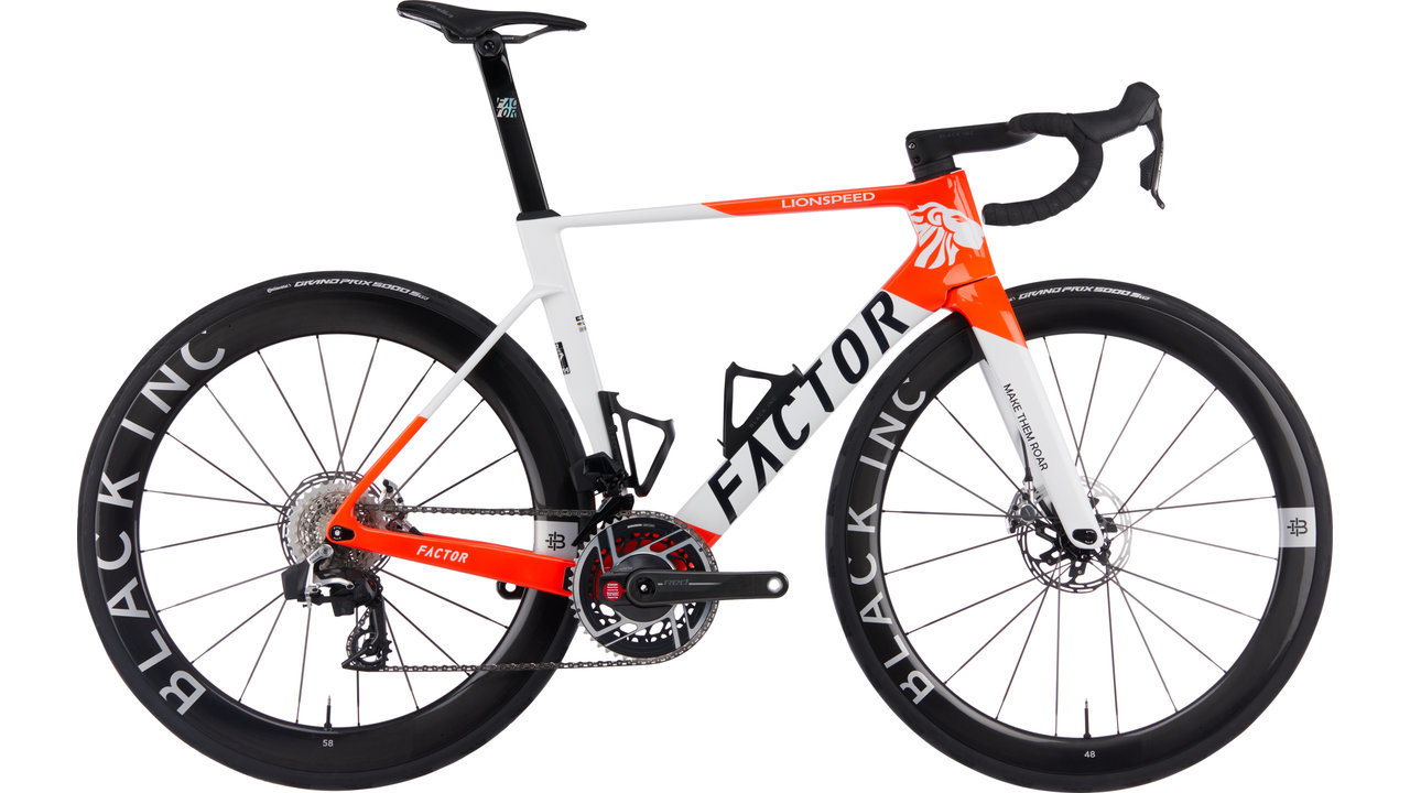 Information regarding the return of batteries and electrical equipment: Information on the return and disposal of used batteries and electrical equipment can be found here. For information regarding the return of used e-bike batteries, please contact our customer service. Product Specifications: Application:Road Brake Type:disc Frame material:Carbon Fork material:Carbon Gender:Women's, Men´s lionspeed/XS/28"/165,0 mm/53 mm: Wheel size:28" Crank Arm Length:165,0 mm lionspeed/S/28"/170,0 mm/48 mm: Wheel size:28" Crank Arm Length:170,0 mm lionspeed/M/28"/170,0 mm/48 mm: Wheel size:28" Crank Arm Length:170,0 mm lionspeed/XL/28"/172,5 mm/43 mm: Wheel size:28" Crank Arm Length:172,5 mm Technical Information: Seatpost diameter:Aero form lionspeed/XS/28"/165,0 mm/53 mm: Fork Offset:53 mm lionspeed/S/28"/170,0 mm/48 mm: Fork Offset:48 mm lionspeed/M/28"/170,0 mm/48 mm: Fork Offset:48 mm lionspeed/XL/28"/172,5 mm/43 mm: Fork Offset:43 mm Components: Seatpost:Factor OSTRO Crankset:SRAM Red Powermeter, 35-48 teeth Cassette:SRAM Red, 10-33 T, 12-speed Brakes:SRAM Red, hydraulic Pedals:without Frame:Factor OSTRO V.A.M. Shift/Brake Lever:SRAM Red eTap AXS Derailleur:SRAM Red eTap AXS, 12-speed Chain:SRAM Red Bottom Bracket:CeramicSpeed T47a Front Derailleur:SRAM Red AXS 2-speed Rear Wheel Tyre:Continental GP5000 S TR, 700x28C Front Wheel Tyre:Continental GP5000 S TR, 700x28C Approved For: Max. Disc Brake Size Rear:160 mm Max. Disc Brake Size Front:160 mm Max Tire Size Rear:32-622 (700 x 32C) Max Tire Size Front:32-622 (700 x 32C) Product Features:— 1 x Road bike Factor OSTRO V.A.M. 2.0 Disc Lionspeed Limited Carbon 28"