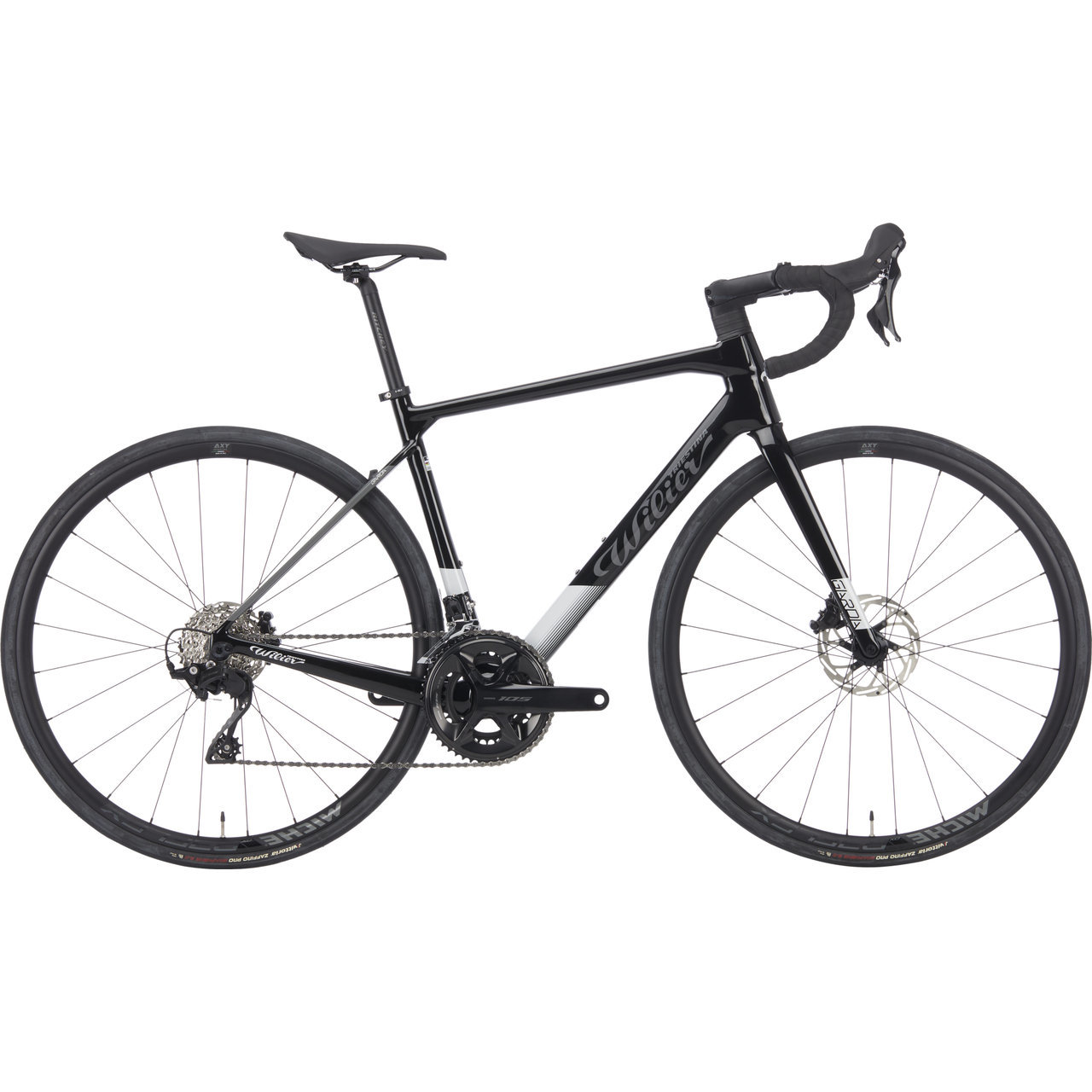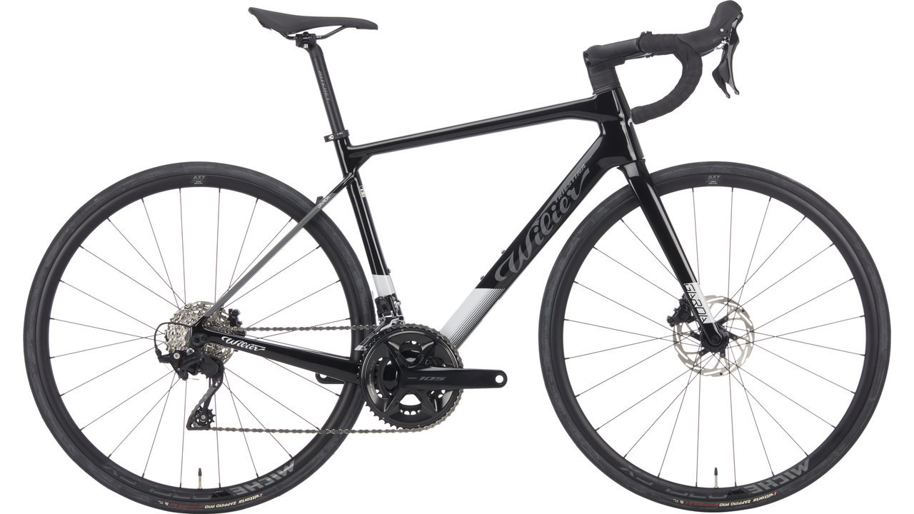Product Specifications: Application:Road Brake Type:disc Frame material:Carbon Fork material:Carbon Gender:Women's, Men´s black-grey/28"/S: Wheel size:28" black-grey/28"/M: Wheel size:28" black-grey/28"/L: Wheel size:28" black-grey/28"/XL: Wheel size:28" Technical Information: Seatpost diameter:27,2 mm Components: Brakes:Shimano BR-R7170, hydraulic Cassette:Shimano CS-R7100, 11-34 T, 12-speed Chain:Shimano M7100 Crankset:Shimano 105 R7100, 34-50 Teeth Derailleur:Shimano 105 R7100, 12-speed Front Derailleur:Shimano 105 R7100 Shift/Brake Lever:Shimano 105 Frame:Wilier Garda Carbon, Flat Mount, 12 x 142 mm Saddle:Prologo Kappa RS Seatpost:Wilier Aluminum Rear Wheel Tyre:Vittoria Zaffiro 700 x 28C Front Wheel Tyre:Vittoria Zaffiro 700 x 28C Pedals:without Approved For: Chainring Count Compatibility:2x Product Features:— 1 x Wilier Garda road bike Shimano 105 carbon